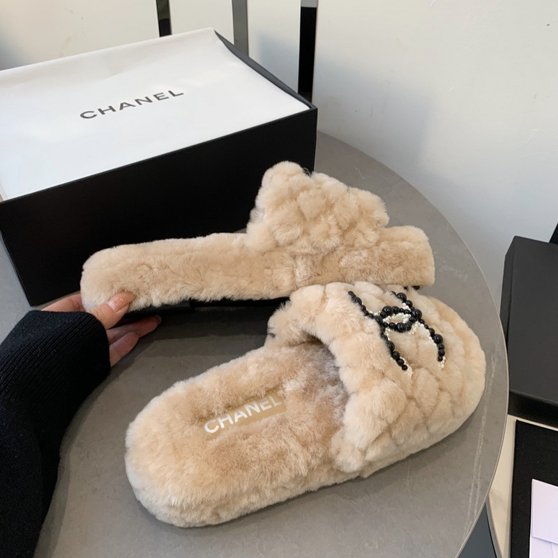 CHANEL 小香️️ss新款羊毛拖鞋頂级品质纯皮毛一体羔羊毛打造!米超温暖的感觉,穿上仿佛踩在云朵上️,精致高级!让这双毛拖身价陡增!鞋底是原版开模的防滑橡胶大底,非常好穿不打滑,而且鞋底有一定厚度,舒适度极佳!鞋面:羊毛(手缝珍珠) ️色🉑️选 码数35-39.(40.41定做不退换) TX1151280
