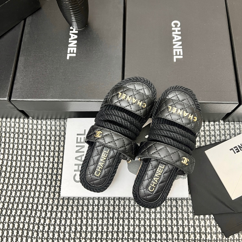 Chanel Women’s Leather Slides Sandals with Rope -001