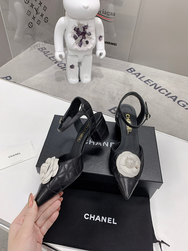 羊皮跟高5cm / Chanel 山茶花后空凉鞋 / 鞋面-进口小羊皮 内里-垫脚混种羊皮 高跟-5cm / 码数:35-40 ● 超好看的山茶花凉鞋 精致又经典 好打理 经典复古 优雅好搭配!● TX1255340