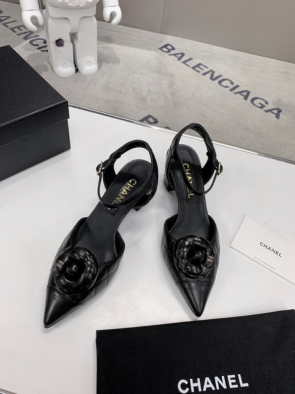 羊皮跟高5cm / Chanel 山茶花后空凉鞋 / 鞋面-进口小羊皮 内里-垫脚混种羊皮 高跟-5cm / 码数:35-40 ● 超好看的山茶花凉鞋 精致又经典 好打理 经典复古 优雅好搭配!● TX1255340