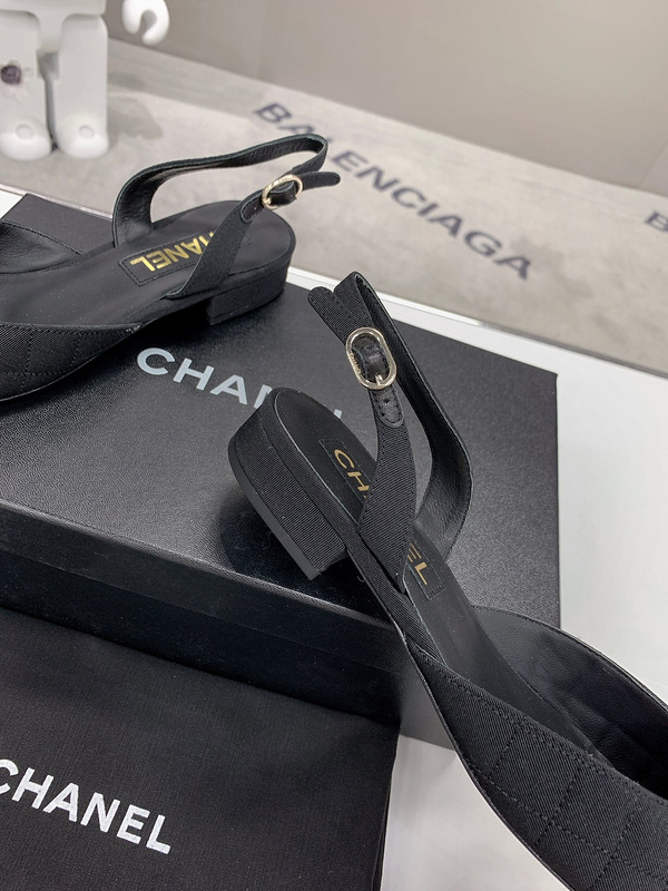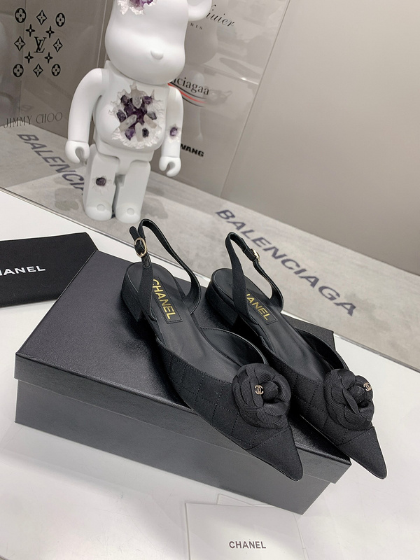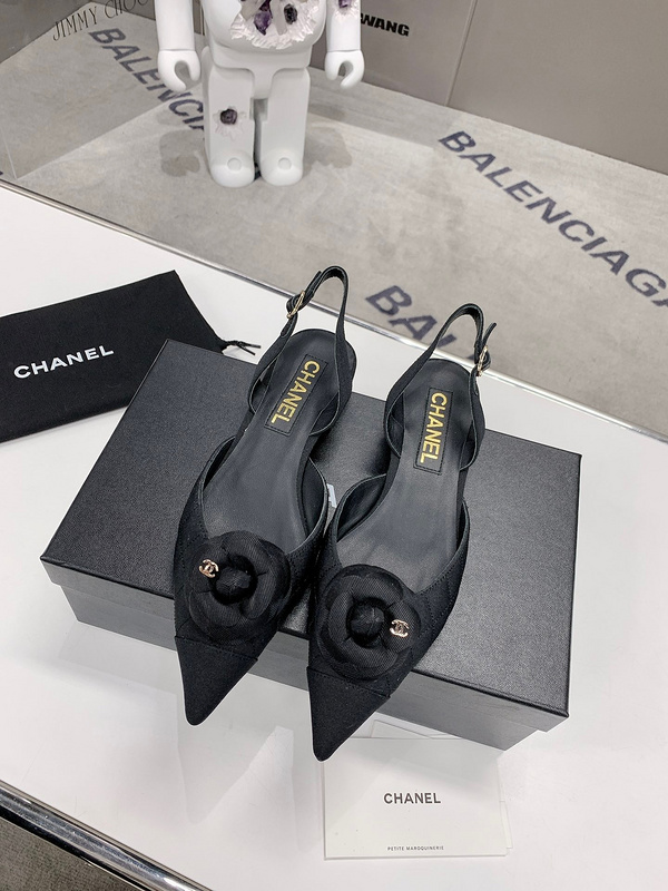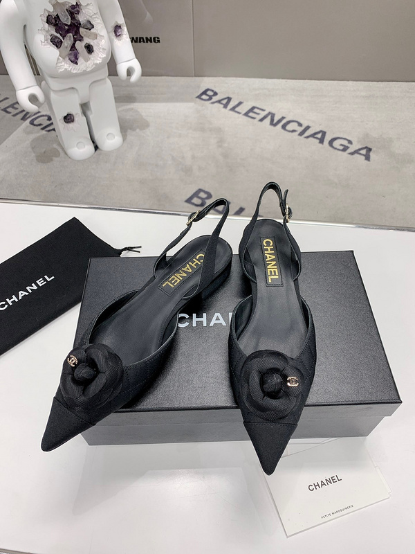 Chanel Women’s Leather Slingback Flats with Camelia Toe Cap-007