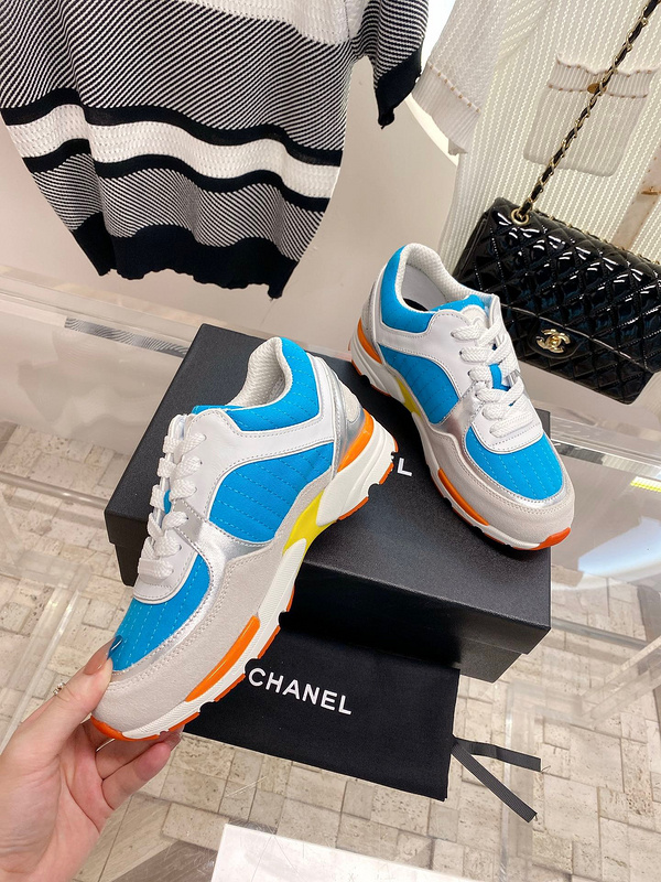 CHANEL 香奈儿 顶级代购 专柜最新配色运动鞋 清新靓丽 经典耐看 百搭 舒适度极佳,鞋子轻柔,细节随意放大对比顶级品质! 牛皮拼接高丝光麂皮绒+丝绸鞋面 原版Tpu组合大底/回弹力好/舒适柔软 标准码35-41 TX909360