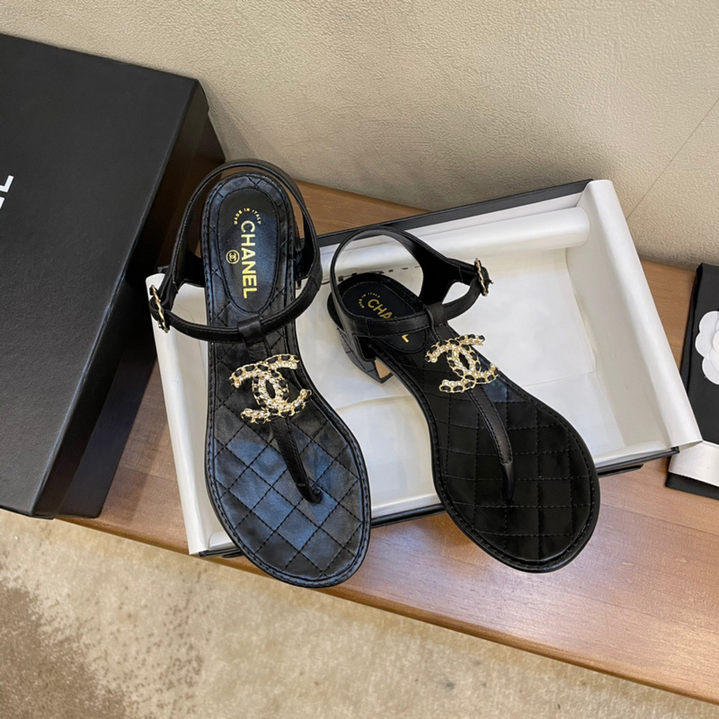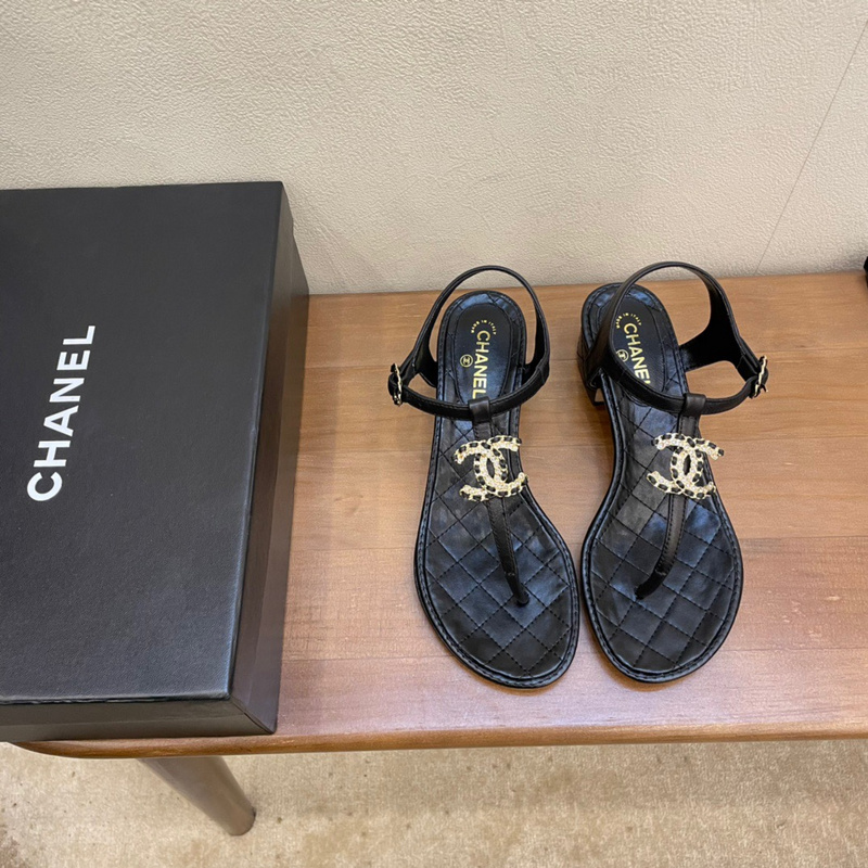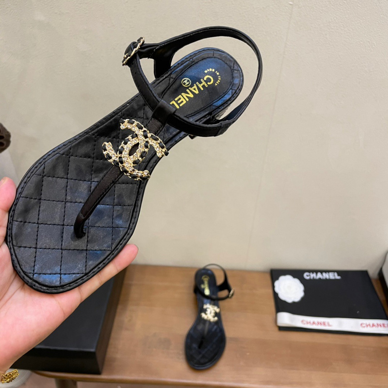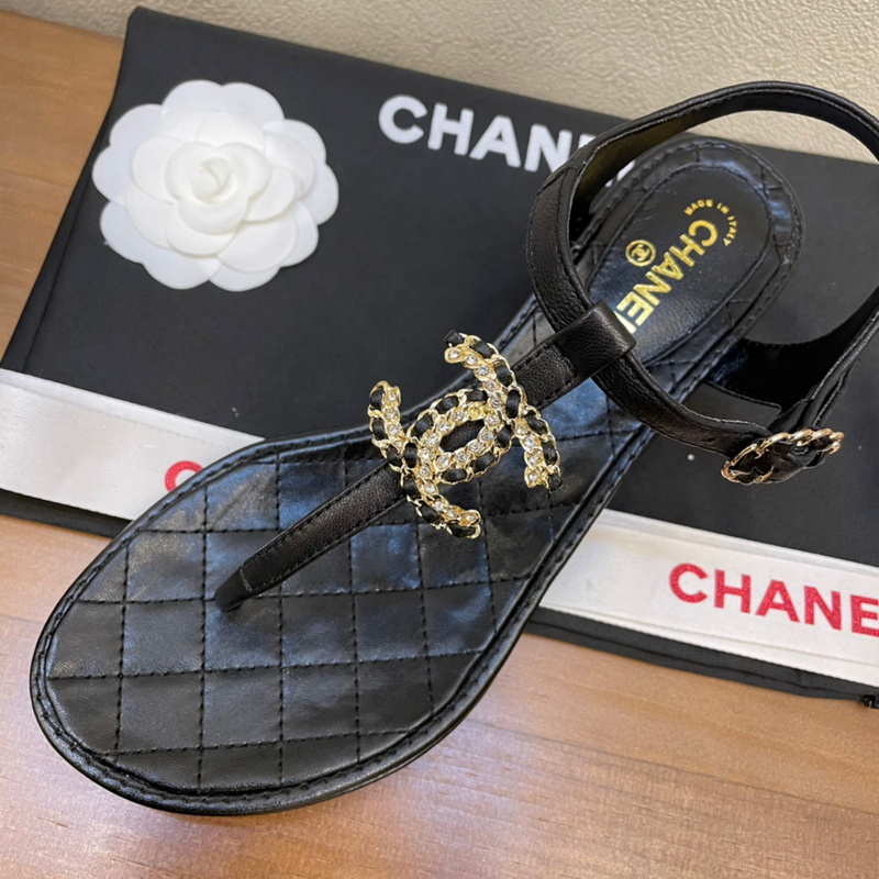 Chanel Women’s Sandals with Crystal Chain Golden Logo