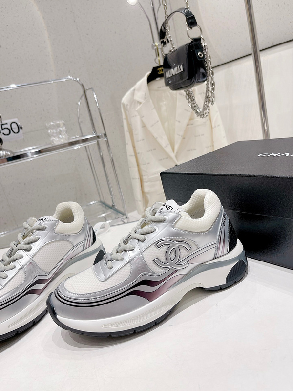 Chanel 小香2023早春度假系列 最新款休闲运动鞋 银色,金色!无敌漂亮又好穿 非常轻便,内里也是超级软,超级舒服,鞋面透气设计,配色高级耐看 百搭 鞋面:牛皮加布面拼接 内里:透气网布 原版发泡组合大底 码数:35-40 TX1188370