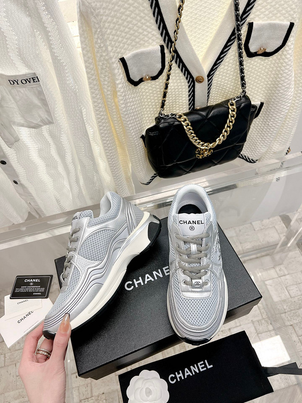 Chanel 香奈儿 顶级代购 最新拼色运动鞋 原版定制 上脚清新靓丽 经典耐看 百搭 舒适度极佳,鞋子轻柔,细节随意放大对比顶级高端品质! 牛皮拼接布面拼接材料 冲孔内里透气材质 原版Tpu组合大底/回弹力好/舒适柔软 标准码35-40 TX909380