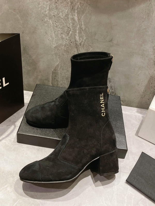 新品 香奈儿2022CHANEL官网同步最新款后拉链弹力靴代购级别品质✔原版材料 上脚相当百搭秀气 网红街拍款 香奈儿定制logo电绣装饰 面料/进口弹力面料十牛皮 &内里/垫脚:进口羊皮 &跟高: 5公分 &筒高:7.5寸 &Size:35–40,41码定做 TX1352280
