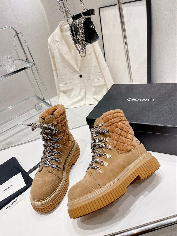 香奈儿chanel2022N 雪地靴 冬季运动系带厚底女靴 Jennie 同款打歌鞋 舒适好穿 又超级酷 开模大底 防滑双C,昂贵电镀五金扣眼排! 搭配澳洲进口羊毛,➕细腻的羊京!鞋舌精致的电绣,非常的洋气 !鞋底吸模双色大底 底约5cm 35-40码 TX1188360