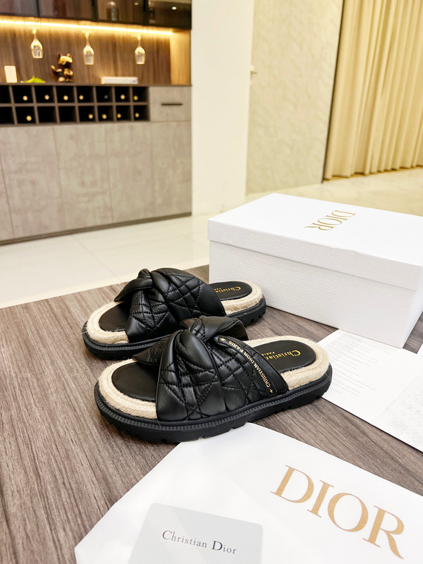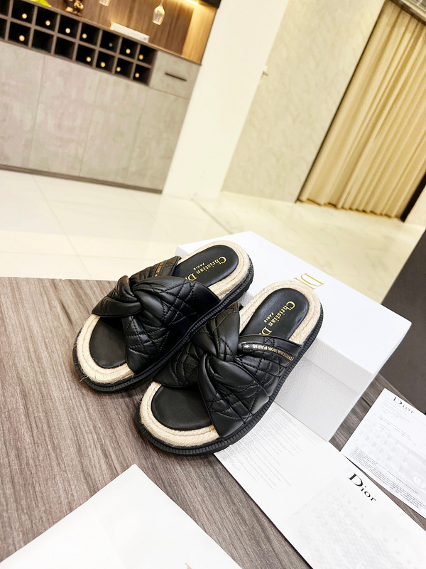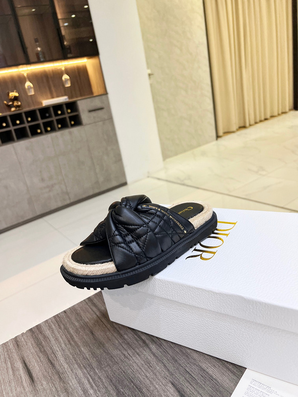 Dior Leather Slides with Cross Strap -006