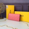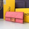 Fendi Baguette Pink Long Leather Wallet with FF Logo and Chain Strap