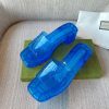 GUCCI新款果冻厚底拖鞋 搭配袜子又是一种风格~可当雨鞋沙滩海边旅游必备 材质:TPU环保材质专柜环保塑胶解性材质最关键的是这次用了PU发泡填充鞋内的设计,穿上脚舒适度百分百 跟高:5.5cm 水台2.2cm (️我们鞋子有香味的 进出专柜无压力,配专柜全套包装) Size: 35–41 长期做货,放心推! TX1135160