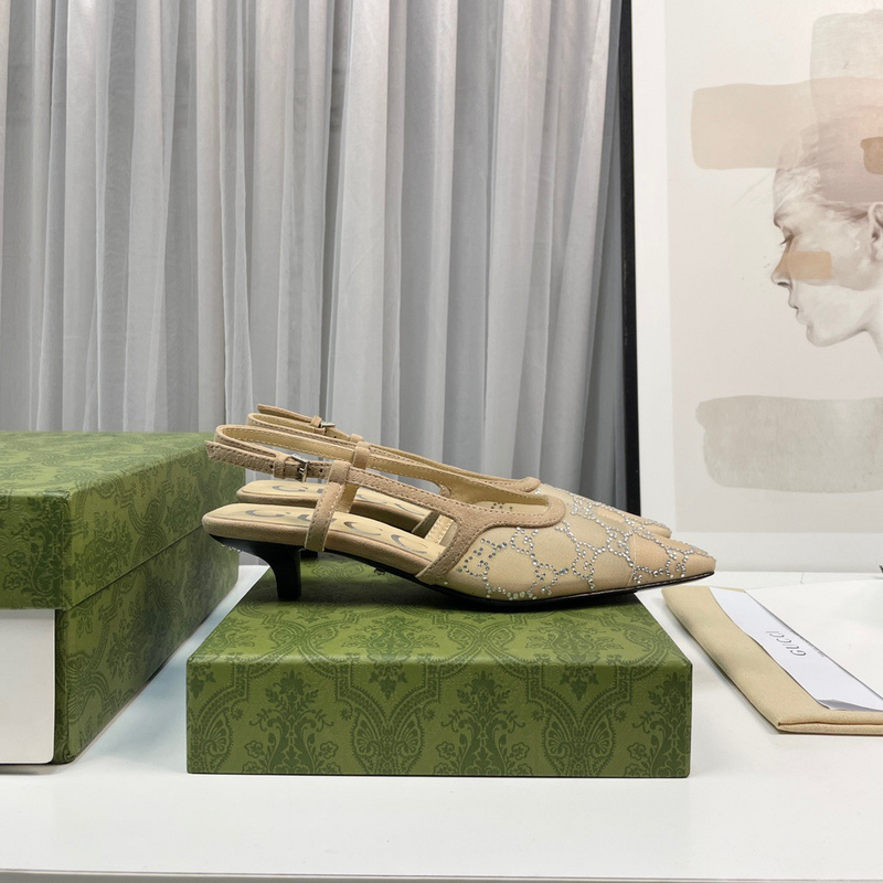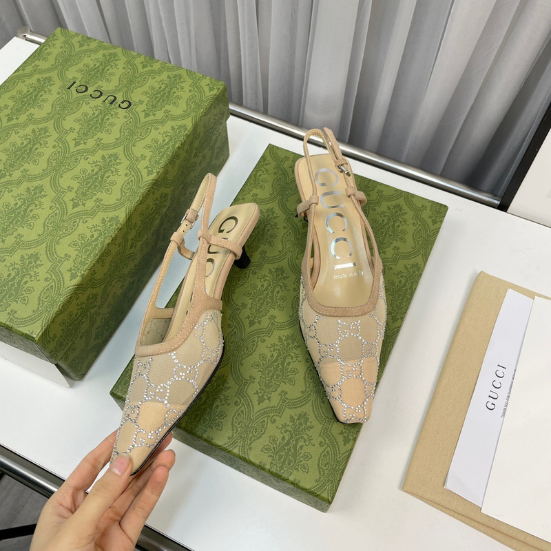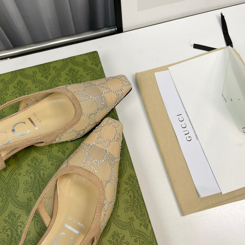 Gucci Leather Slingback Sandals with Crystal Embellishment -009