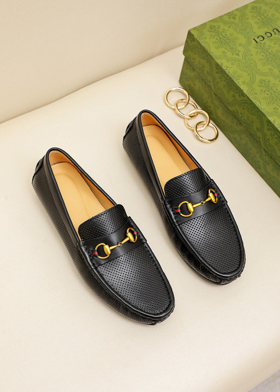 Gucci Men’s Genuine Black Leather Loafers Casual Dress Leather Shoes GU005