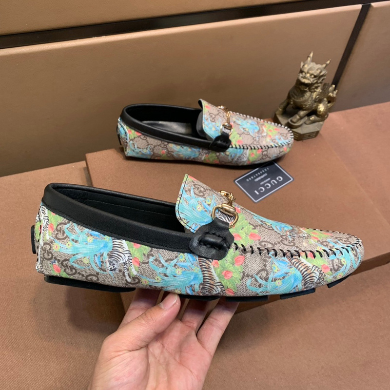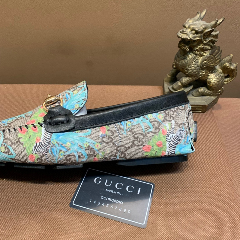 【实价】全牛里 🆘 【GUCCI】古奇香港高品质豆豆鞋。懒人套脚乐福款 此款面料采用进口顶级意大利头层双G印花牛皮➕全头层牛皮内里 里更为高档 原版防滑耐磨橡胶大底驾车唯一选择,码数:38-44 单色可选 TB970220