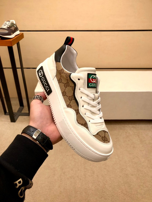🎋【GUCCI 古奇】新款男士休闲鞋~原版质量️鞋面牛皮配优质布面料,透气性强,耐磨天然柔软真爆橡胶大底,时尚舒适。码数:38-44、 TB907240