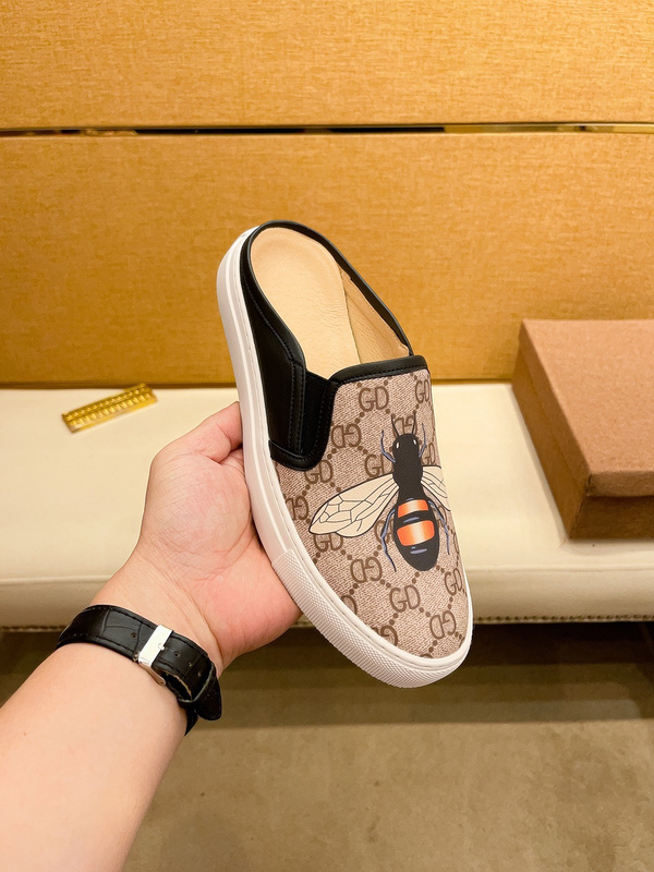 【G U C C l】古奇新款高端精品半拖休闲鞋,男士春夏时尚休闲鞋,颇具特色。鞋面进口头层牛皮,真皮内里,一展设计格调。脚感柔软舒适,原版橡胶大底!Size:38-44 TB808220