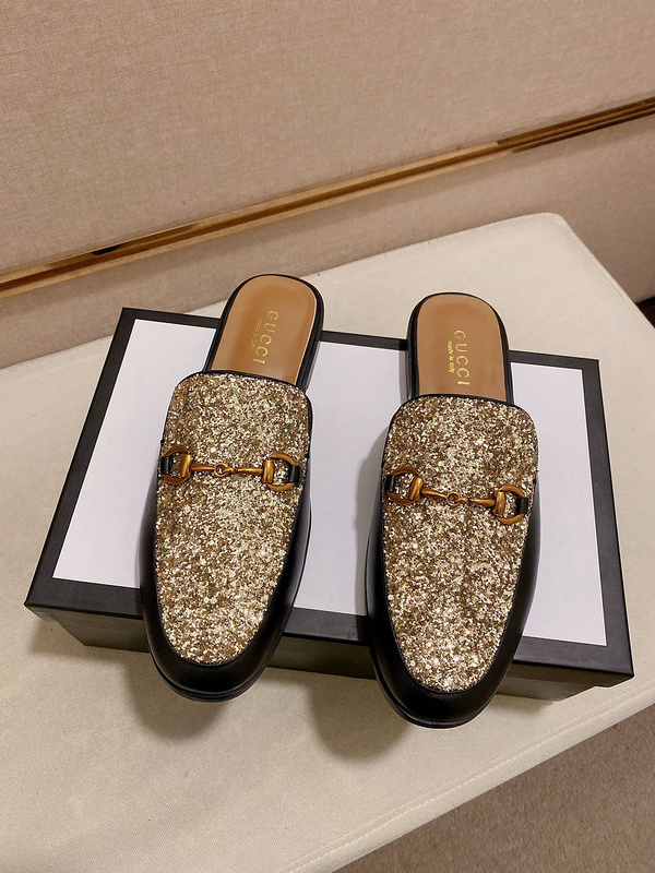 (Gucci 古奇)。最新潮鞋休闲包头拖实体店爆款38-44码。 新品舒适进口定制原版牛皮,独特亮片元素设计。搭配羊皮内里,原版底,高端包装高品质细节决定品质、可随意进出专柜,欢迎对比! TB920220