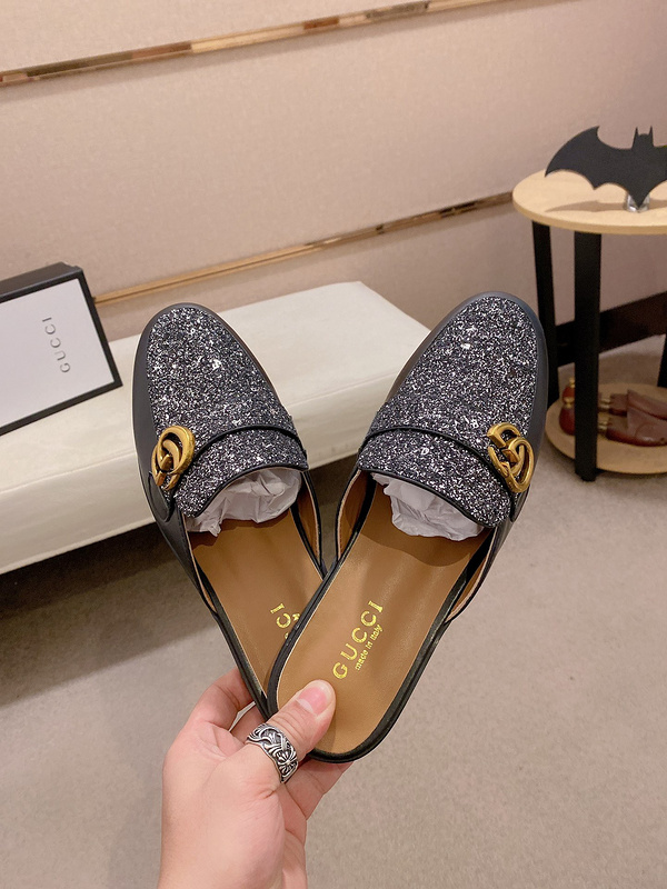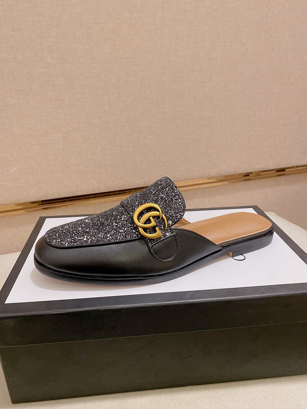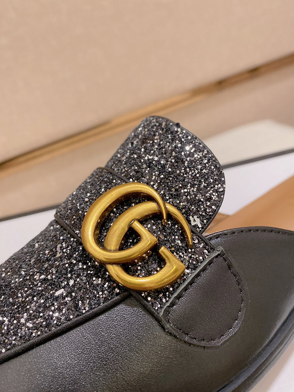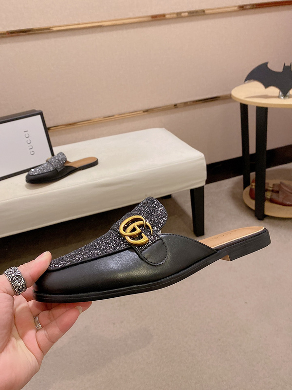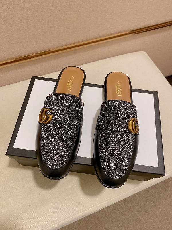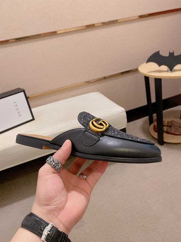 (Gucci 古奇)。最新潮鞋休闲包头拖实体店爆款38-44码。 新品舒适进口定制原版牛皮,独特亮片元素设计。搭配羊皮内里,原版底,高端包装高品质细节决定品质、可随意进出专柜,欢迎对比! TB920220