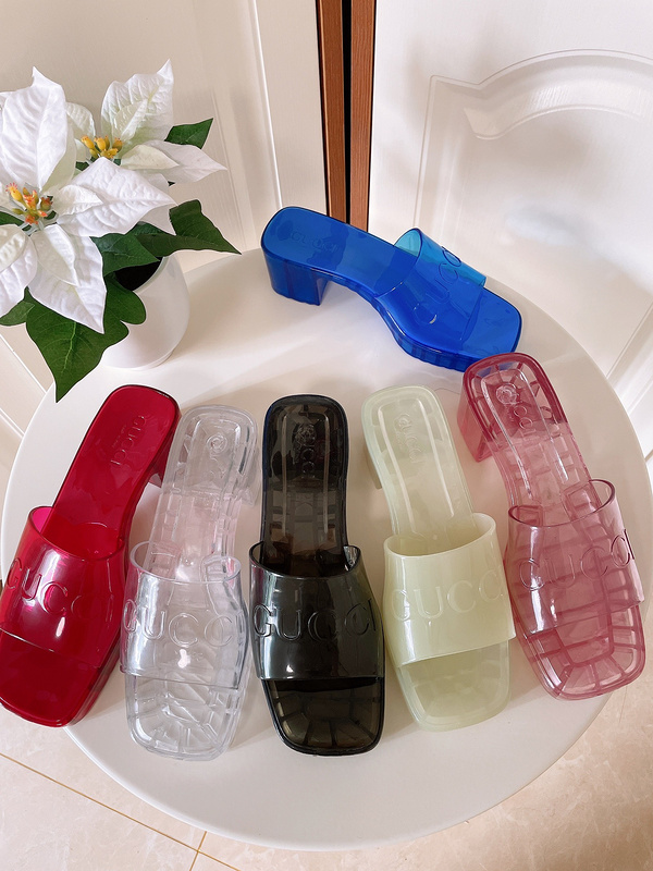 GUCCI新款果冻厚底拖鞋 搭配袜子又是一种风格~可当雨鞋沙滩海边旅游必备 材质:TPU环保材质专柜环保塑胶解性材质最关键的是这次用了PU发泡填充鞋内的设计,穿上脚舒适度百分百 跟高:5.5cm 水台2.2cm (️我们鞋子有香味的 进出专柜无压力,配专柜全套包装) Size: 35–41 长期做货,放心推! TX1135160