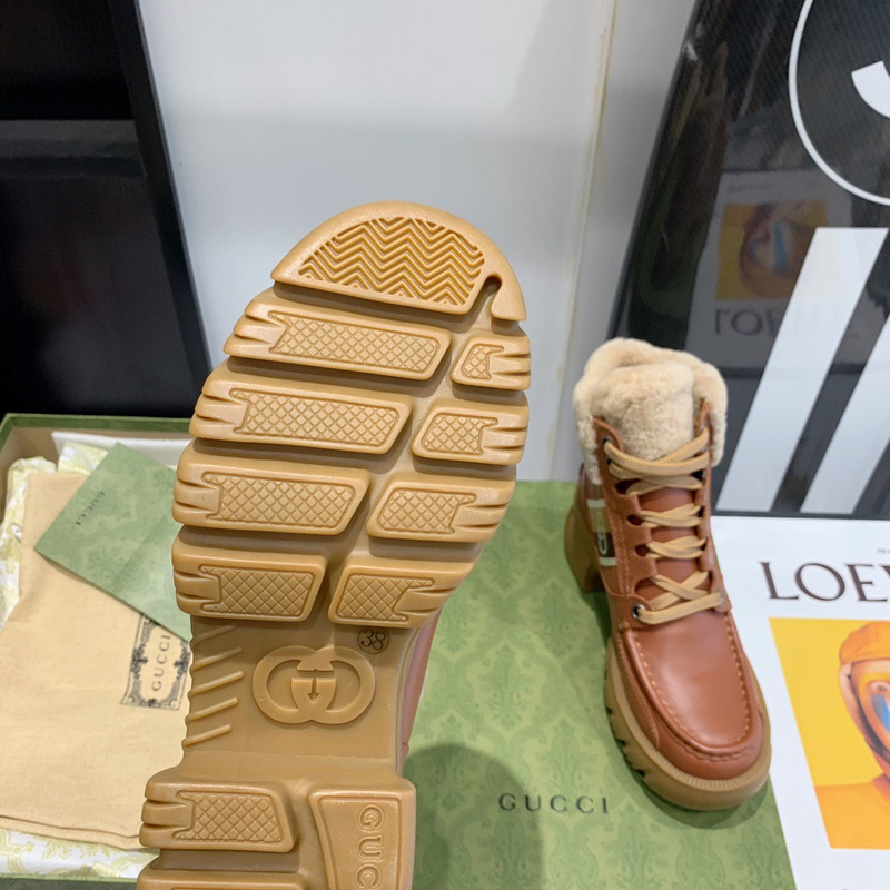 Gucci Women’s Chic Lace-up Leather Wool Boots 002
