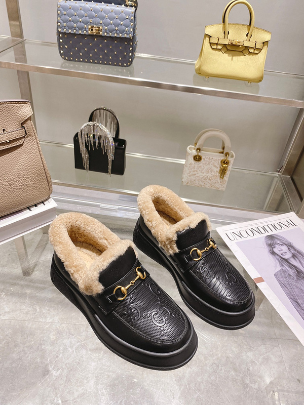 Gucci Women’s Fur-Lined Platform Loafers -004