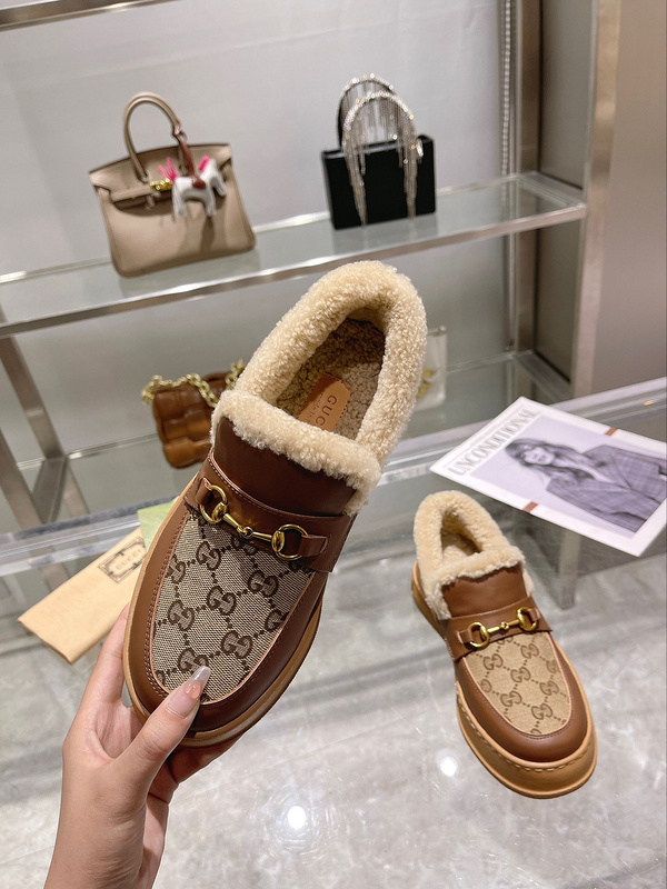 Gucci巴黎时装周中国22年美丽奴羊皮毛一体浅口雪地靴,提花面料LOGO➕头层牛皮➕澳洲进口羊毛内里, Gucci 这款雪地靴结合了品牌两大标志性元素——金色马衔扣五金和 V 字形马特拉塞绗缝。它采用混纺羊毛毡于意大利制成,以柔软皮革饰边,米黄色羊毛皮全衬里让双足保持温暖。橡胶厚底上压印有 Logo,可提供出色抓地力。 鞋跟高约 3 厘米 金典色皮革(小牛皮),米黄色羊毛皮内里, 套穿款 意大利制造 符合标准尺码,请选择平时所穿尺码 中国尺码35~42码 CX105320