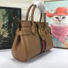 Gucci Women’s Leather Tote Bag with Buckle Closure Brown