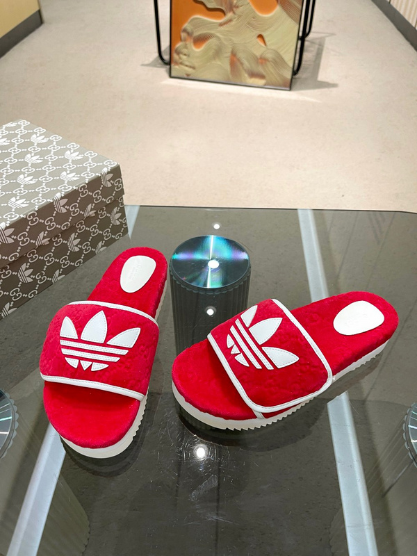 Gucci×Adidas 新款联名拖鞋💫 adidas的三叶草标识 生动的出现在鞋面上 复古老花配色❣️ 点缀充满复古气息的logo标识 兼具品牌标识性元素️ 进口提花绒面材质:表面体感强烈 厚底设计 增高拉长腿型 走路轻巧便捷 完全没有磨脚问题 皮标垫脚logo压花印 独家定制防滑橡胶组合大底 码数:35-43:41;42.43订做 TX1182240