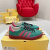 高品质 GUCCI x adidas Original跨界联名德训运动鞋 三叶草logo与标志性三条杆为设计元素 将其与独属于的GUCC双方选择adida originals经典鞋型 Gazalle为蓝本,生胶鞋底搭载三叶草和GUC logo,蟒蛇纹、绒面、麂皮等材质纹理覆盖在鞋面上,将奢华复古与运动风相结合却不显违和感 面料: 原版进口头层牛反绒 内里:原版定制透气网里+羊皮 鞋底:原版开模TPU防滑大底 底厚:2CM Size: 女款35-40 男款39-45 Tx1217310