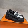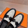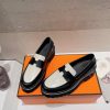 Hermes Women’s Genuine Leather Loafers Black/White