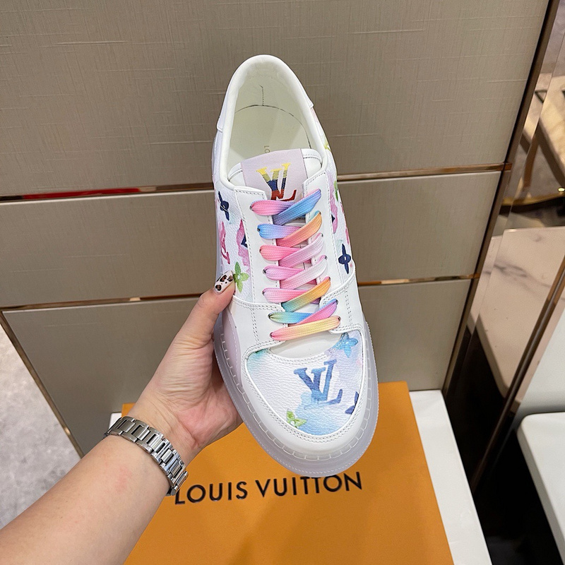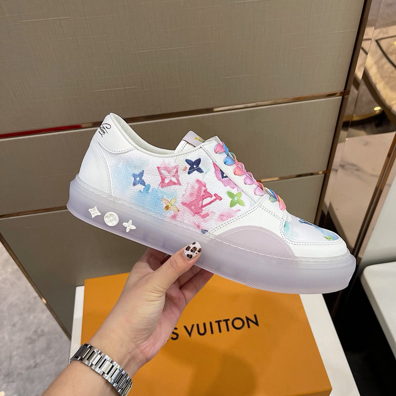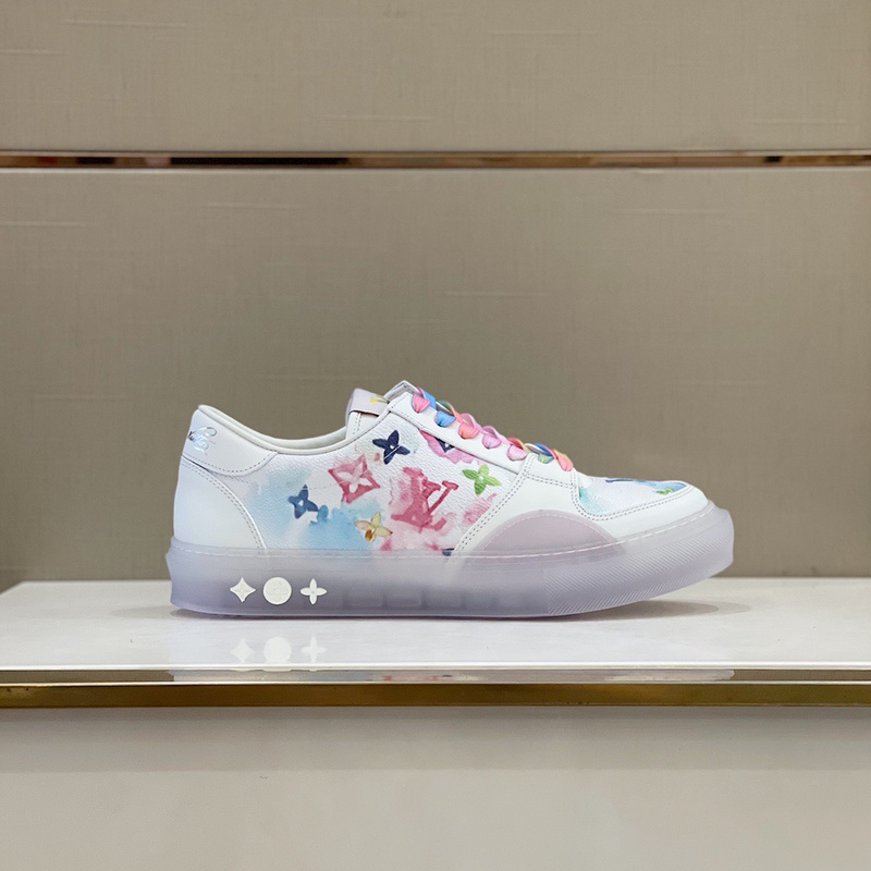 《*OUIS*UITTO》新品Ollie运动鞋 本款Ollie运动鞋为丹宁布铺陈大号Damier图案,搭配双鞋带和牛皮饰边。monogram花卉点缀橡胶外底,进口羊皮内里,手写品牌标识栖身鞋后。 Size:38-44 TB003260