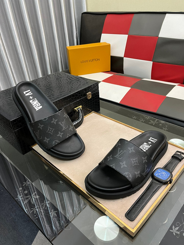 Louis Vuitton Men’s Leather Slides,Rubber Slippers LV005