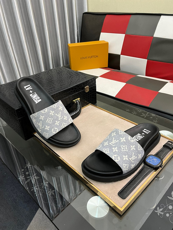 Louis Vuitton Men’s Leather Slides,Rubber Slippers LV009