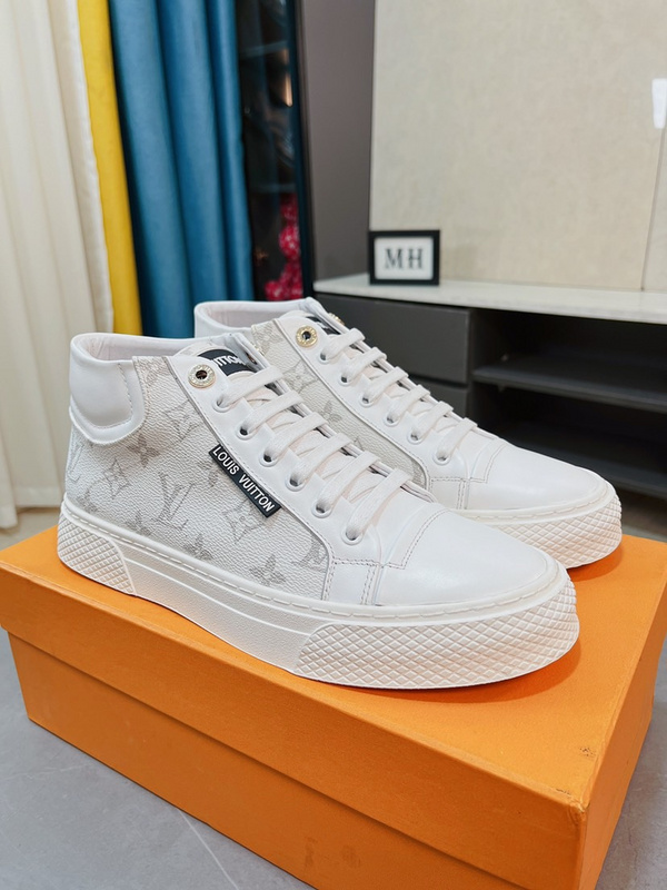 【LV】高帮休闲板鞋 官网同步新款 进口胶料印花牛皮拼接➕羊皮内里制作➕LV原版中底 鞋边内外拉线定型 私家定制原版大底组合 38-44, TB934260