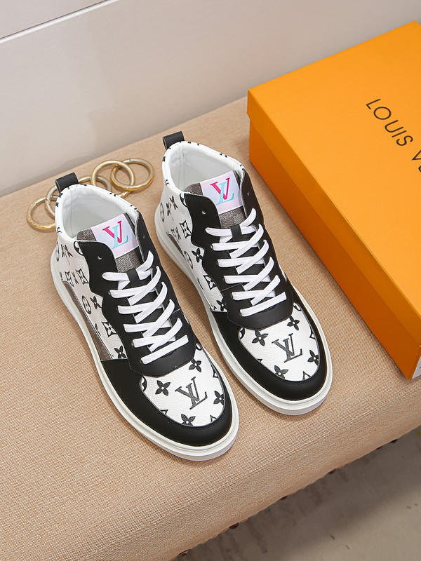 【高帮皮里】市场高版本,爆单款【LV】香港专柜高帮新款鞋,专柜品质,优质做工,鞋面采用进口牛皮 内里牛🐂皮内里 鞋宣完美。做工复杂,舒适透气内里,原版柔软橡胶大底 ,休闲时尚,高端品质,码数:38-44。黑色,灰色,白色选择。 TB807260