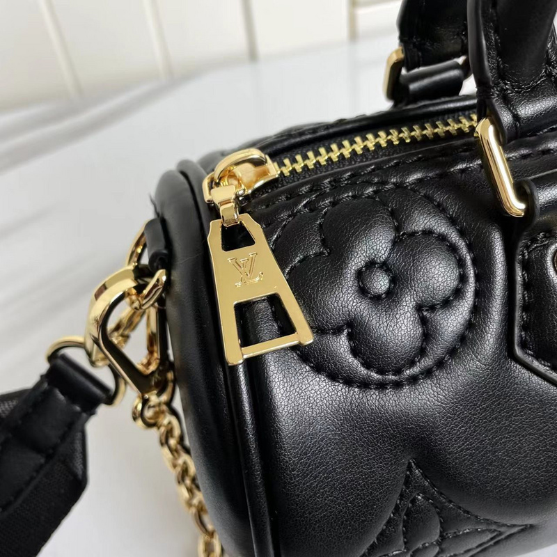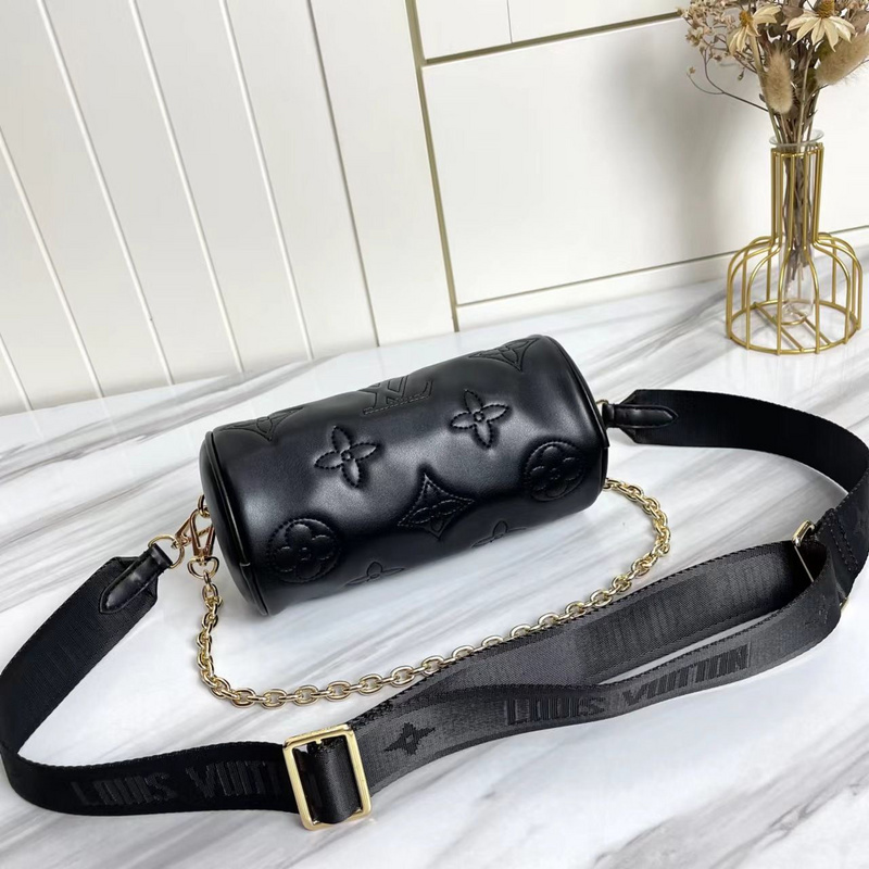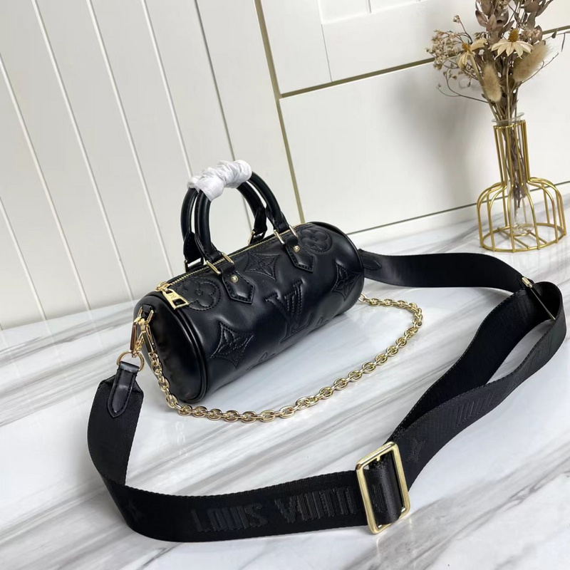 Louis Vuitton PAPILLON Black Embossed Leather Cylinder Bag