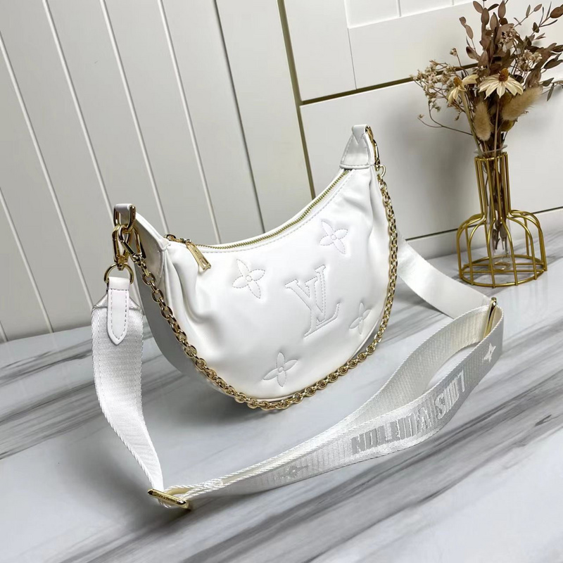 Louis Vuitton White Underarm Bag Leather Handbag- Chain Strap