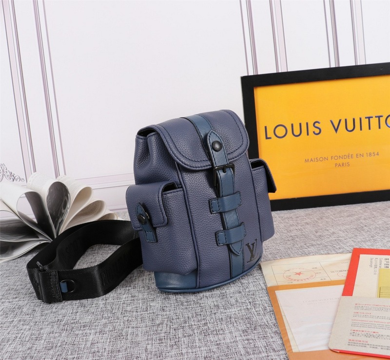 LV Christopher XS Blue Leather Backpack with Multiple Pockets