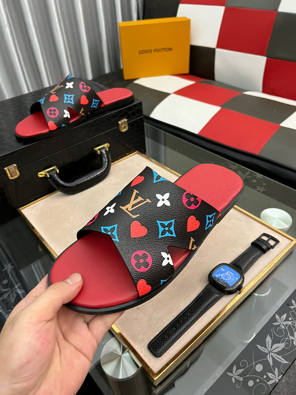 LV Men’s Leather Slides,Luxury Slippers Sandals LOV007