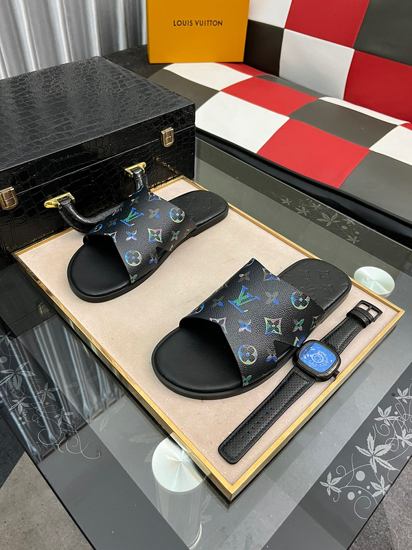 ⌚️⌚️ Lv 男士春夏拖鞋专柜同步 鞋面意大利进口牛皮面料,标志图形高品质工艺,鞋底:原厂特供原版底,独家活动成型底超级舒适,原厂跟单货,高品质,可随意进出专柜,欢迎对比,码数38-44 TB906160