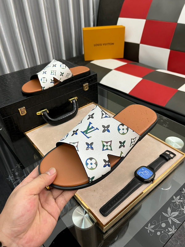 LV Men’s Leather Slides,Luxury Slippers Sandals LOV011