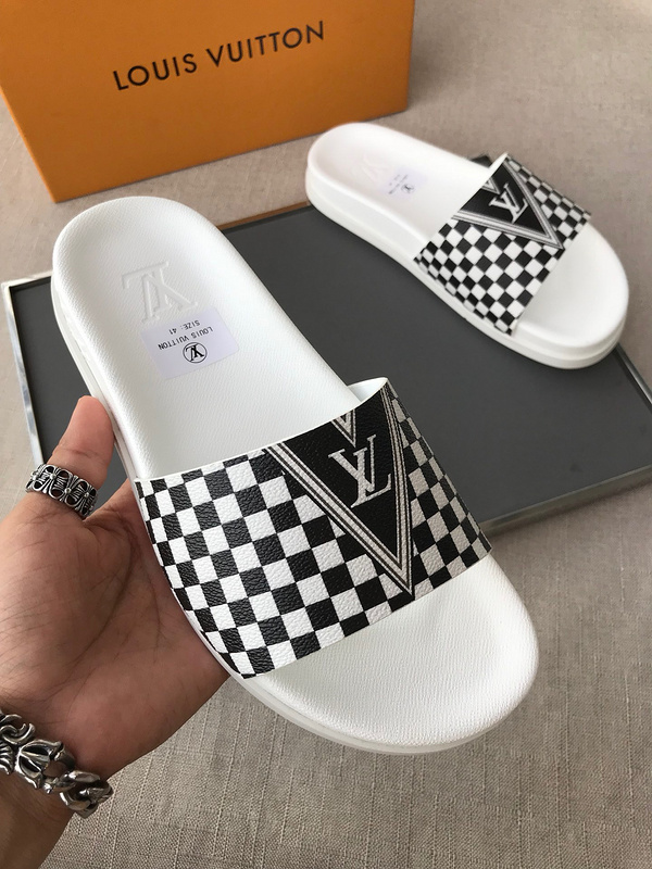 LV Men’s Leather Slides,Luxury Slippers Sandals LOV029
