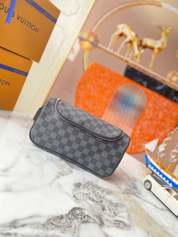 LV Monogram Canvas Zippered Pouch with Gold Hardware and Top Handle -3