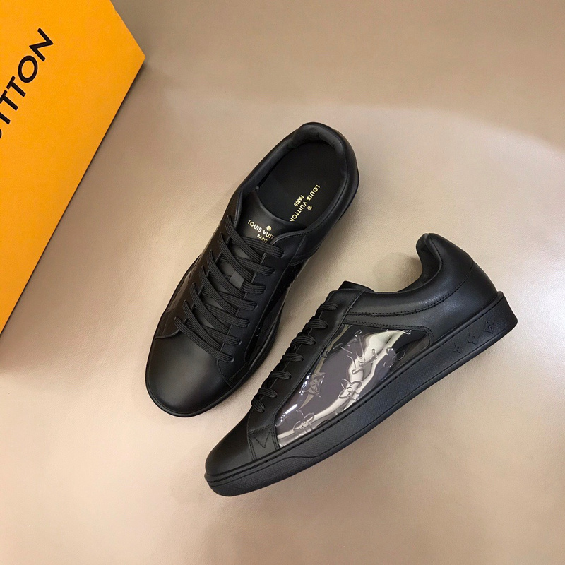 《*OUIS *UITTO*》新款男士运动鞋,本款融入透明材质和经典 Monogram 图案,以小牛皮饰边勾勒色块效果。Monogram 花卉和品牌标识分别压印橡胶外底和鞋舌。高端品质!码数38-44 TB003230