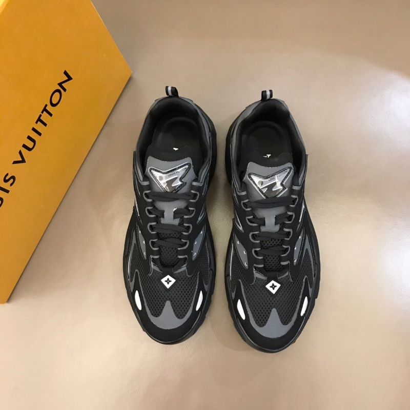 《*OUIS *UITTO*》2022运动鞋混合网格织物和牛皮革制成的麂皮,延续跑鞋的设计精髓,瞩目亮相路易威 2022 春夏秀场。L ”v 字母和 Monogram 花卉点缀侧面,加衬鞋领和科技内衬更添舒适。脚感轻盈舒适,鲜艳色彩点亮春夏搭配! Size:38-44 TB003350