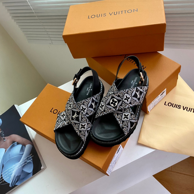 Louis Vuitton 2021新款(路易威登) Jumbo Flatform凉鞋经典编织花布裁出柔软宽,随意一搭都能穿出立体刺绣的质感。不仅可以修饰腿型,更显得身材高挑、秒变大长腿🏻 厚底元素拖鞋摆脱了俗套、邋遢,鞋面运用独特进口牛皮 搭配奶磨绒大底 轻便舒适 size:35-40 TX1210220