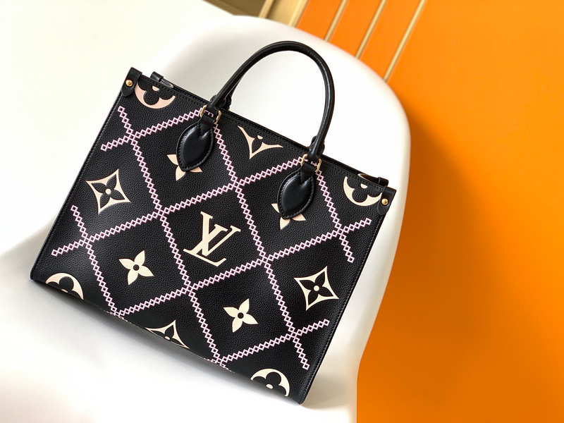 LV ONTHEGO Women’s Large Capacity Tote Bag with Zipper Closure Black