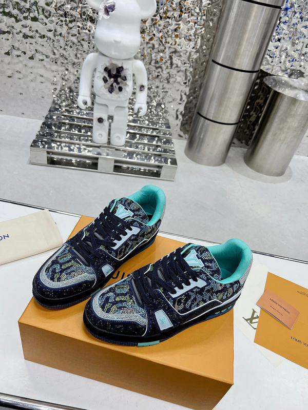 高品质 【钻石款】 ️ 情侣款️ 2023 Louis Vuitton LV Traine 走秀款❗️ 《滑板鞋系列》TRAINER 大底和面料私模 绝对下血本费心思的一款鞋子 自Vifgil到来之后而设计的这一系列 每一季度都深受众多粉丝的青睐 TPU原版大底 原版包装 女码:35➖41 (女41定做不退换) 男码:39➖46(46定做不退换) 001550