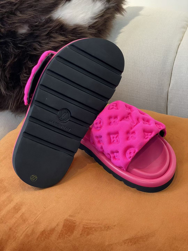 . Louis vuitton 路易威登 ss22 new arrival~ 2022春夏老花立体浮雕拖鞋 专柜今年最抢手的女鞋单品,没有之一 软萌的尼龙真丝压印logo鞋面,宽大的鞋底,上脚超显瘦! 鞋底高密度发泡材质很轻盈,全牛皮包裹中底! 顶级精品35-45 TX1193240