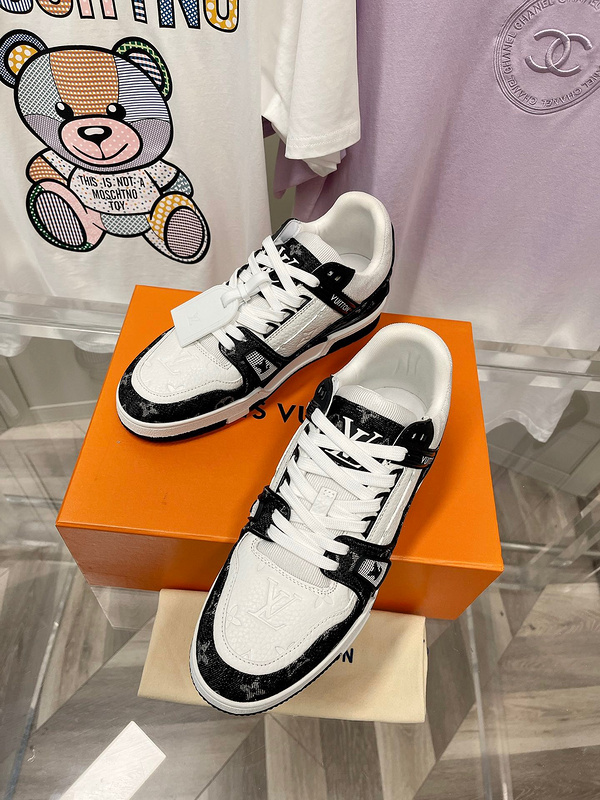 高品质 情侣款全新配色Louis Vuitton路易威登 Trainer 运动鞋 新款发布会预定,荔枝纹皮拼丝绸牛仔布料 重新演绎经典 L^V Trainer 运动鞋 牛仔布鞋面搭配小牛皮革饰边,展现高雅艺术和前卫潮流的相遇 ✔️独家定制牛皮1:1 ✔️所有切边口都按照原版的步骤加工涂边 ✔️独家私模Vuitton 标识,鞋带排 ✔️定制丝滑网里 ✔️TPU组合成底耐磨防滑防黄 ✔️原版开模大底也深藏着Monogram 花卉 ✔️拉线/鞋头/后套/冷热加工定型/全套拉帮套楦 女码35-40、男码39-45