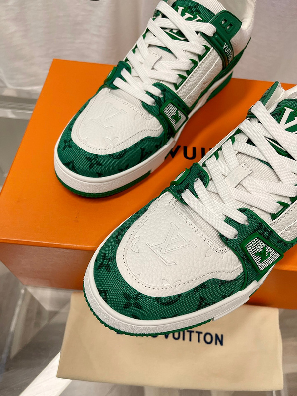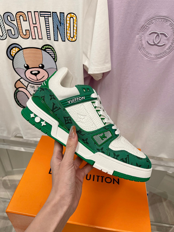 高品质 情侣款全新配色Louis Vuitton路易威登 Trainer 运动鞋 新款发布会预定,荔枝纹皮拼丝绸牛仔布料 重新演绎经典 L^V Trainer 运动鞋 牛仔布鞋面搭配小牛皮革饰边,展现高雅艺术和前卫潮流的相遇 ✔️独家定制牛皮1:1 ✔️所有切边口都按照原版的步骤加工涂边 ✔️独家私模Vuitton 标识,鞋带排 ✔️定制丝滑网里 ✔️TPU组合成底耐磨防滑防黄 ✔️原版开模大底也深藏着Monogram 花卉 ✔️拉线/鞋头/后套/冷热加工定型/全套拉帮套楦 女码35-40、男码39-45